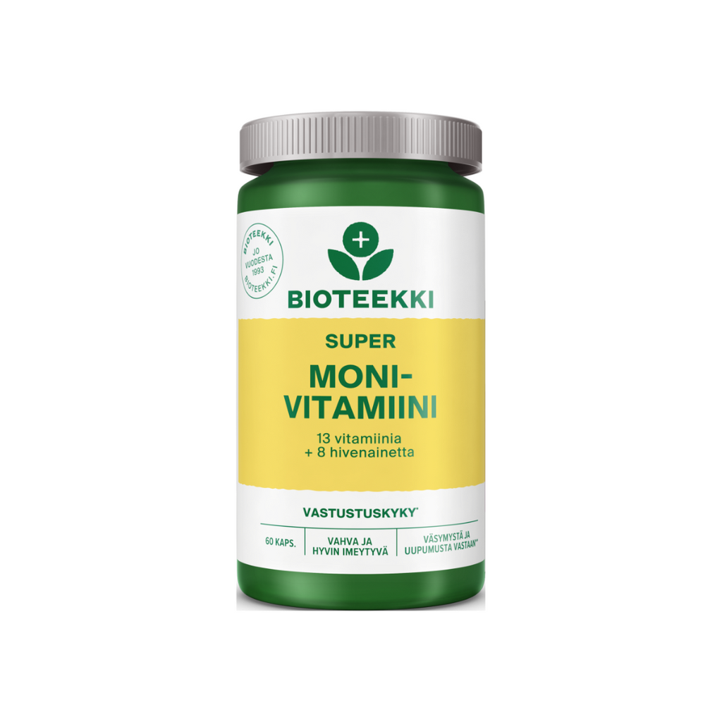 Ainesosat: L-askorbiinihappo, liivate (kapseli, farmaseuttinen laatu), flavonoidipitoinen sitrushedelmävalmiste (pomeranssista), luontainen E-vitamiini, täyteaine (mikrokiteinen selluloosa), Sinkkibisglysinaatti, seleenihiivavalmiste, nikotiiniamidi, paakkuuntumisenestoaine (rasvahappojen magnesiumsuolat), luontainen beetakaroteeni (Blakeslea trispora -sienestä), natriummolybdaatti, kalsium-D-pantotenaatti, mangaanibisglysinaatti, tiamiinihydrokloridi, pyridoksiinihydrokloridi, kuparibisglysinaatti, riboflaviini, luteiinipitoinen samettikukkavalmiste, lykopeenipitoinen tomaattivalmiste, boorihappo, retinyyliasetaatti, D-biotiini, fyllokinoni, Maissitärkkelys, kromipikolinaatti, Kolekalsiferoli, foolihappo, kaliumjodidi, B12-vitamiini (metyylikobalamiini)