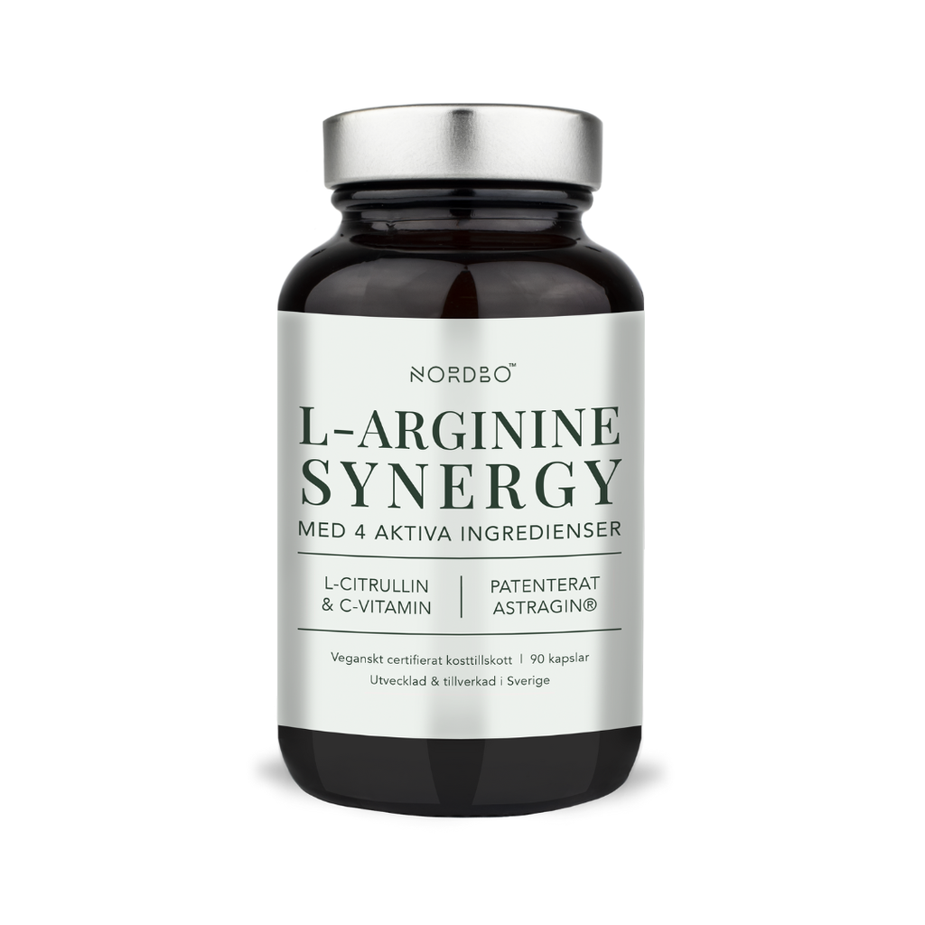 Ingredienser: L-Arginin, L-Citrullin, C-vitamin (Kalciumaskorbat), AstraGin® (Astragalus / Astragalus membranaceus & notoginseng / Panax notoginseng), MCT-olja