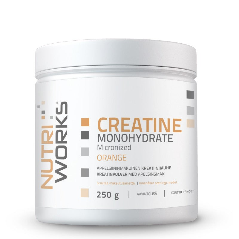 Appelsiini Ainesosat: mikronoitu kreatiinimonohydraatti, happamuudensäätöaine (omenahappo), aromi (appelsiini), makeutusaine (stevioliglykosidit), paakkuuntumisenestoaine (piidioksidi), väri (beta-karoteeni)