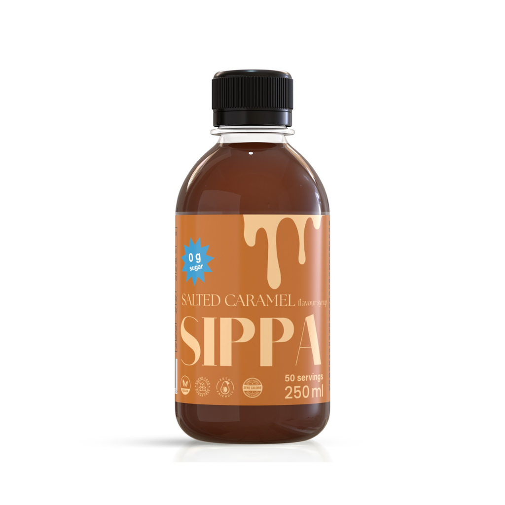 SALTED CARAMEL Kaloriton suolaisen karamellin makuinen makusiirappi. Ainesosat: Vesi, luonnollinen aromi, makeutusaineet: Stevian stevioliglykosidit, sukraloosi, säilöntäaineet: natriumbentsoaatti, kaliumsorbaatti, väri: ammoniakkikaramelli, sakeuttamisaine: ksantaanikumi, happamuudensäätöaine: sitruunahappo. Saattaa sisältää: soijapapuja, maitoa, sinappia ja selleriä.