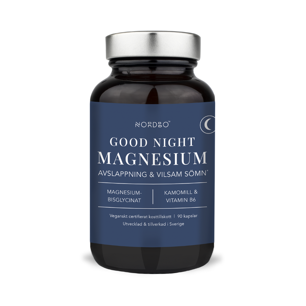 Ingredienser: Magnesium (bisglycinat), kamomillblomsextrakt (Matricaria chamomilla L.), vitamin B6 (pyridoxal-5-fosfat), MCT-olja (kokosnöt), risstärkelse, kapsel (hydroxipropylmetylcellulosa).