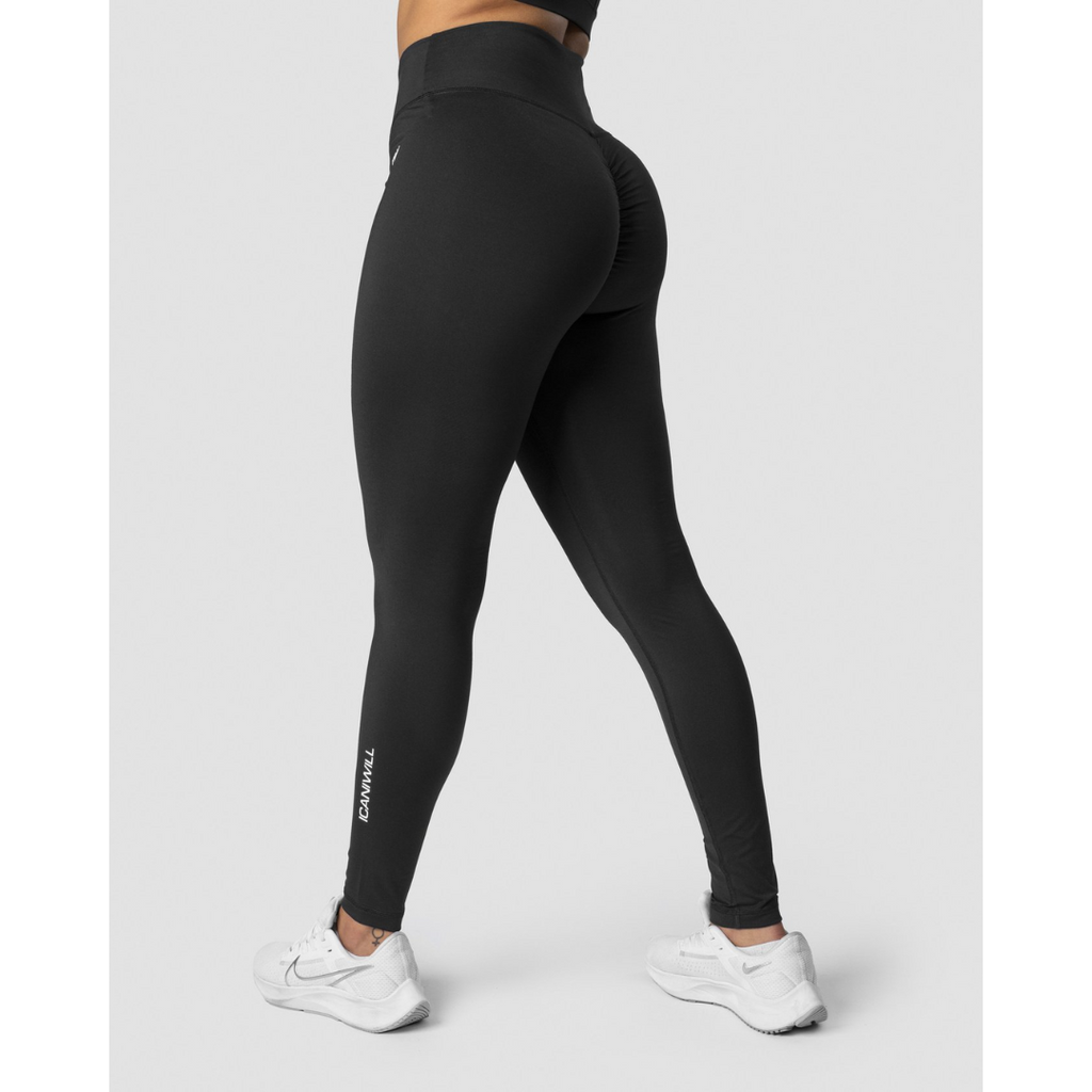 ICANIWILL Scrunch Tights, black wmn korkeavyötäröiset trikoot korostavat muotojasi scrunch-butt ominaisuuden ansiosta kauniilla tavalla.