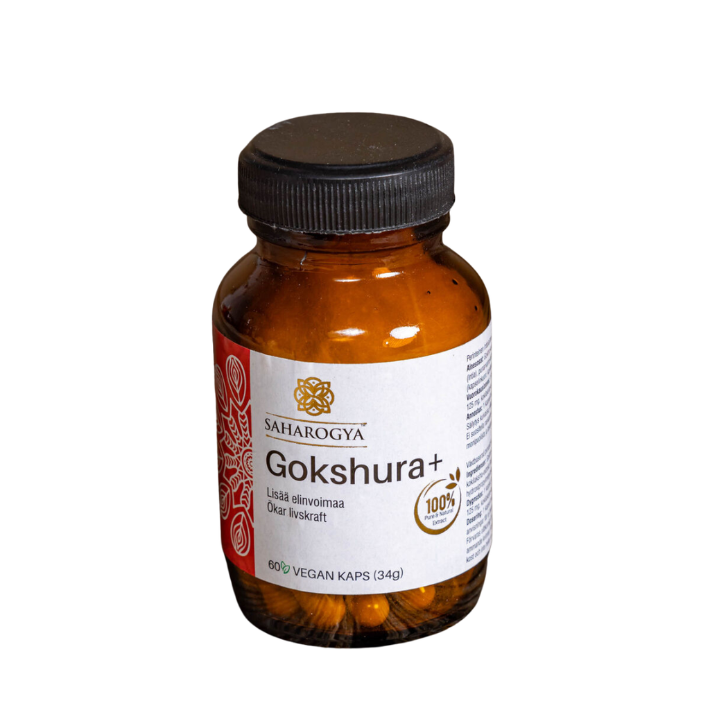 Ingredienser: Gokhru-extrakt (Indien), ingefäraextrakt (Indien), kokilaksha-extrakt